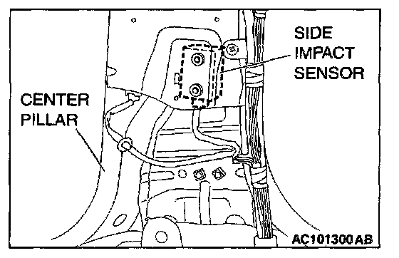 NOTE: The illustration shows the left side impact sensor (LH). The position of the side impact sensor (RH) is symmetrical to this.