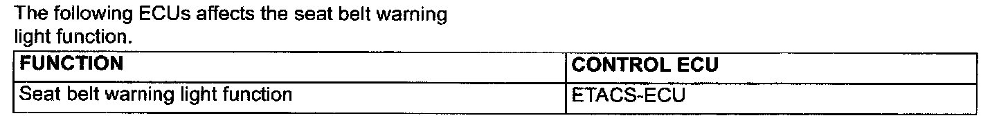 GENERAL DESCRIPTION CONCERNING SEAT BELT WARNING LIGHT