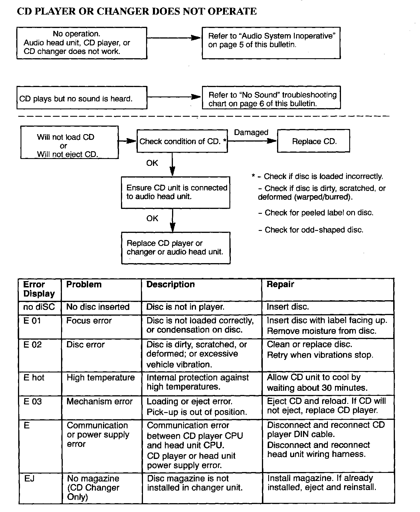 CD PLAYER OR CHANGER DOES NOT OPERATE