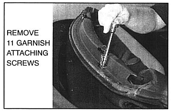 ^ Remove 11 number one bow garnish attaching screws (Torx 15)