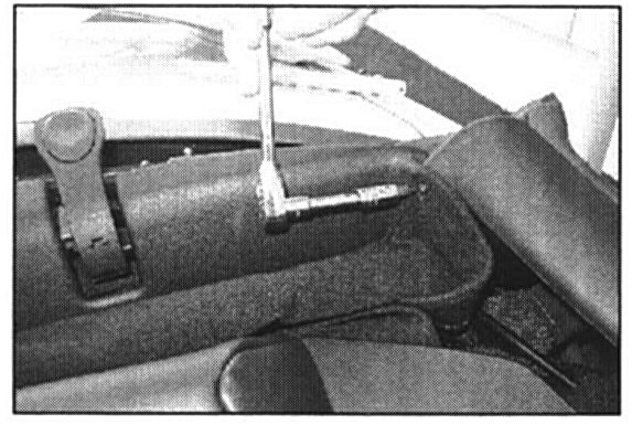 a. With the convertible top closed, remove two screws to remove the number one bow garnish pull cup.