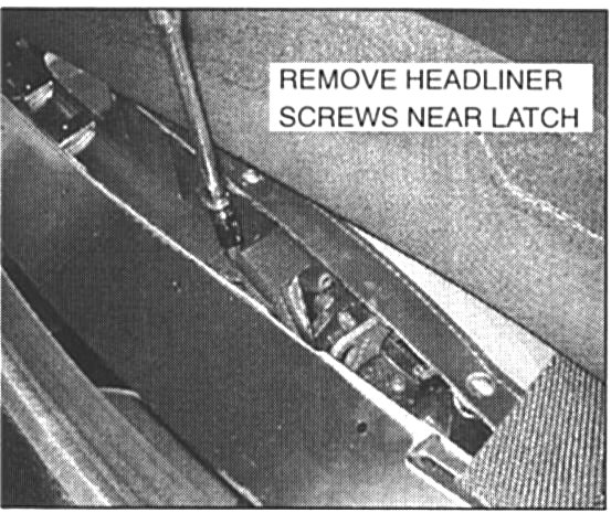g. To access the latch, remove the headliner attaching screws (Torx 15) that are near the latch.