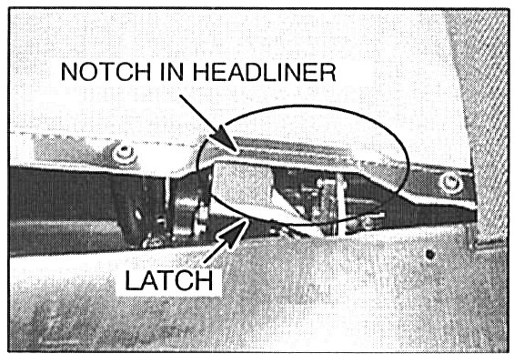 ^ If the headliner already has a notch in the latch area as shown, skip Step 2. Replace the latch with the appropriate part listed in the PARTS INFORMATION section of this bulletin. Then continue with Step 3.
