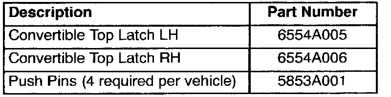 If a convertible top latch is damaged, new, redesigned latches are available tor replacement. Affected vehicles produced after January 2004 have the new-style convertible top latches that require less effort to operate. Only the new-style latches will be available as replacement parts tor earlier production vehicles that require latch repair.