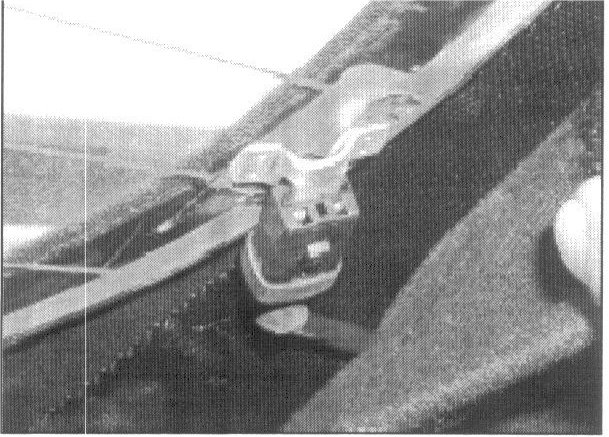 8. Remove the tape after the adhesive has cured for the required time. Check the defogger wire harness routing to make sure there is no binding which might pull the defogger wire or tab, then reattach the defogger wire.