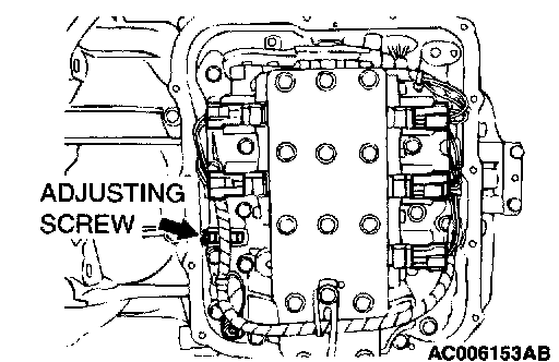 3. Turn the adjusting screw shown in the illustration to adjust the line pressure to the standard value. The pressure increases when the screw is turned to the left.