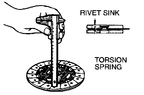 2. Measure the rivet sink and replace the clutch disc if it is below the limit.