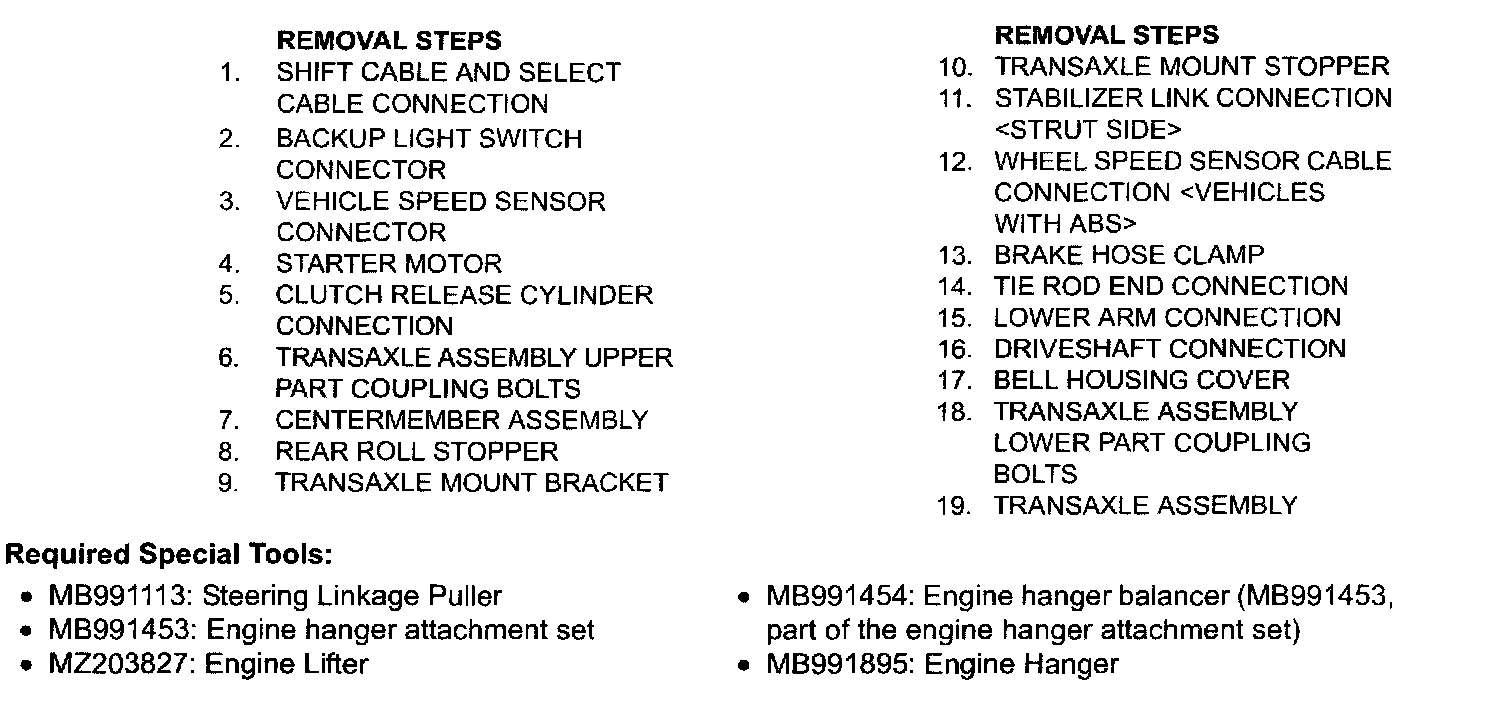<> TRANSAXLE ASSEMBLY REMOVAL