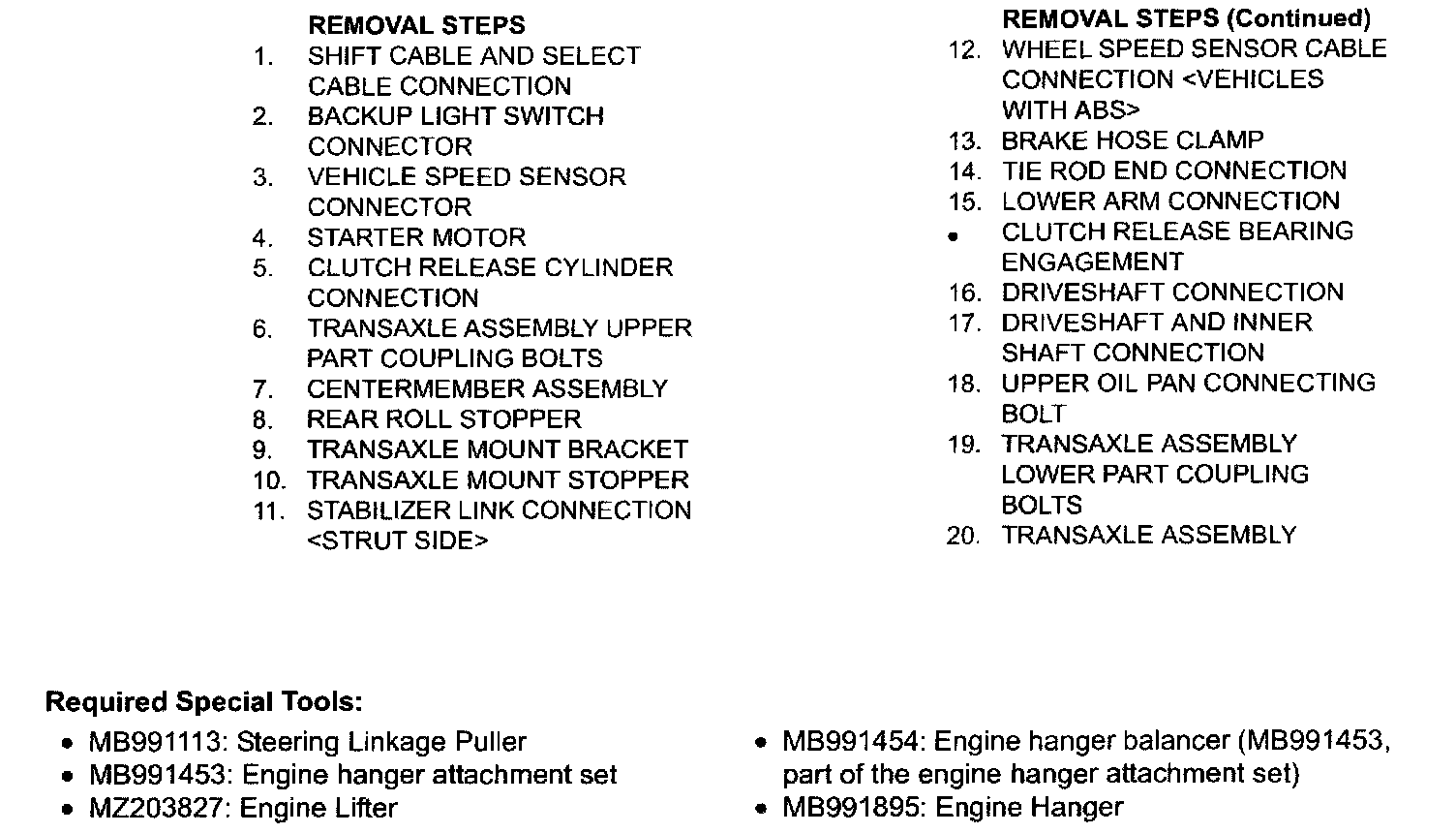 <> TRANSAXLE MOUNT BRACKET REMOVAL
