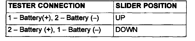 2. Check the continuity when the power window main switch is turned to the UP position or DOWN position.