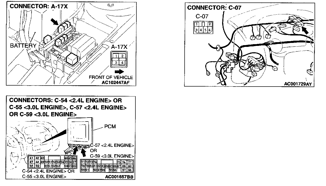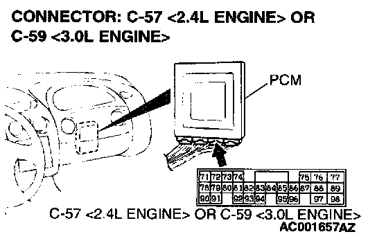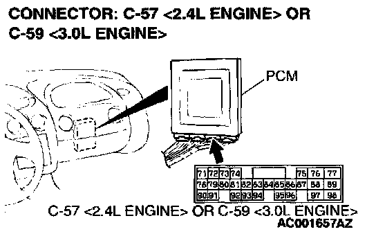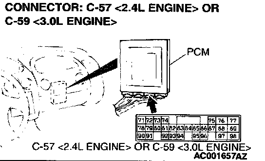 1) Do not disconnect connector C-57 <2.4L Engine> or C-59 <3.0L Engine>.
