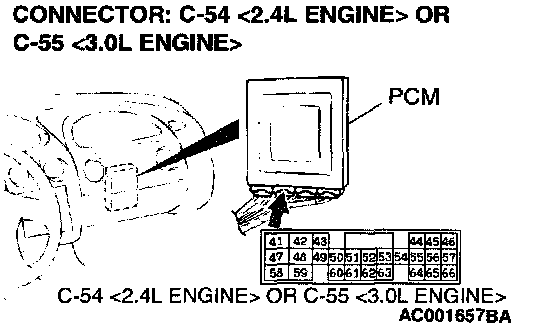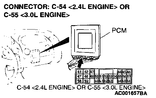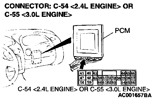STEP 9. Check connector C-54 <2.4L Engine> or C-55 <3.0L Engine> at PCM for damage.