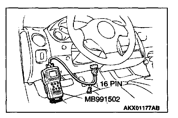 1.Connect scan tool MB991502 to the data link connector.
