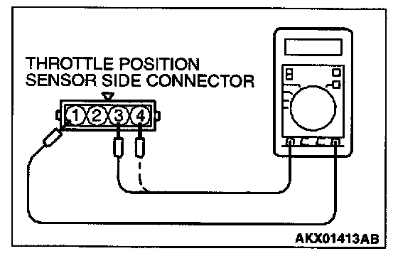 3. Measure resistance between the throttle position sensor side connector terminal 1 and 3.