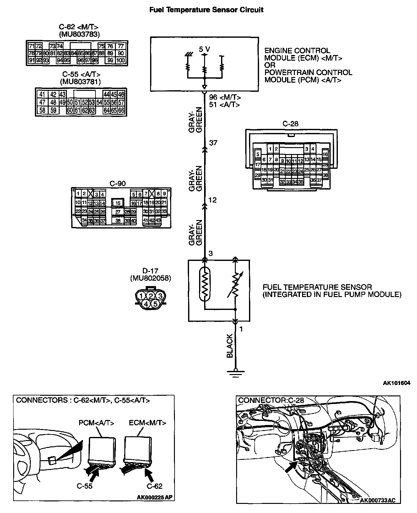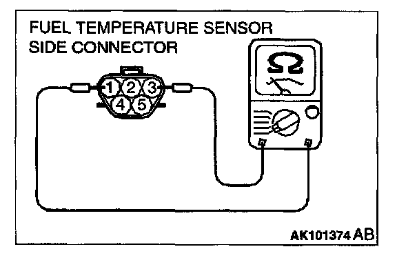 - 5-volt voltage is applied to the fuel temperature sensor output terminal (terminal 3) from the ECM (terminal 96)