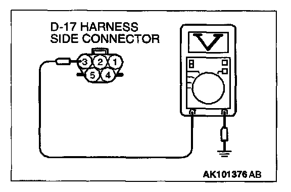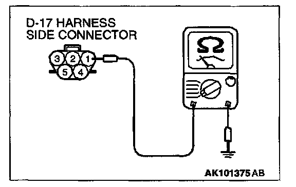 1. Disconnect the connector D-17 and measure at the harness side.
