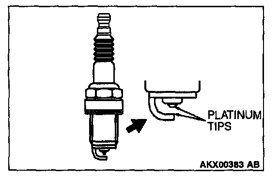 CAUTION: Do not attempt to adjust the gap of the platinum plug. Cleaning of the platinum plug may result in damage to the platinum tips. Therefore, if carbon deposits must be removed, use a plug cleaner and complete cleaning within 20 seconds to protect the electrode. Do not use a wire brush.