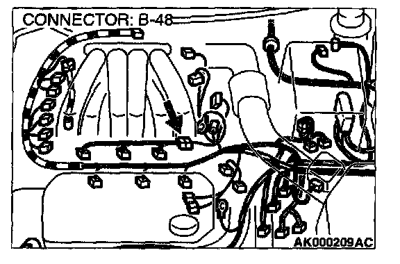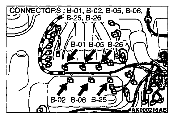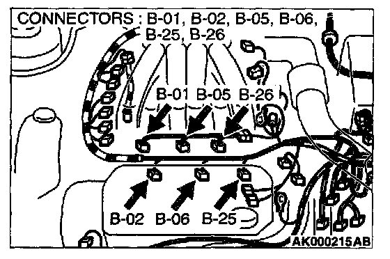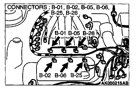 STEP 8. Check connector B-01, B-02, B-05, B-06, B-25, B-26 at injector and connector B-48 at injector intermediate connector for damage.