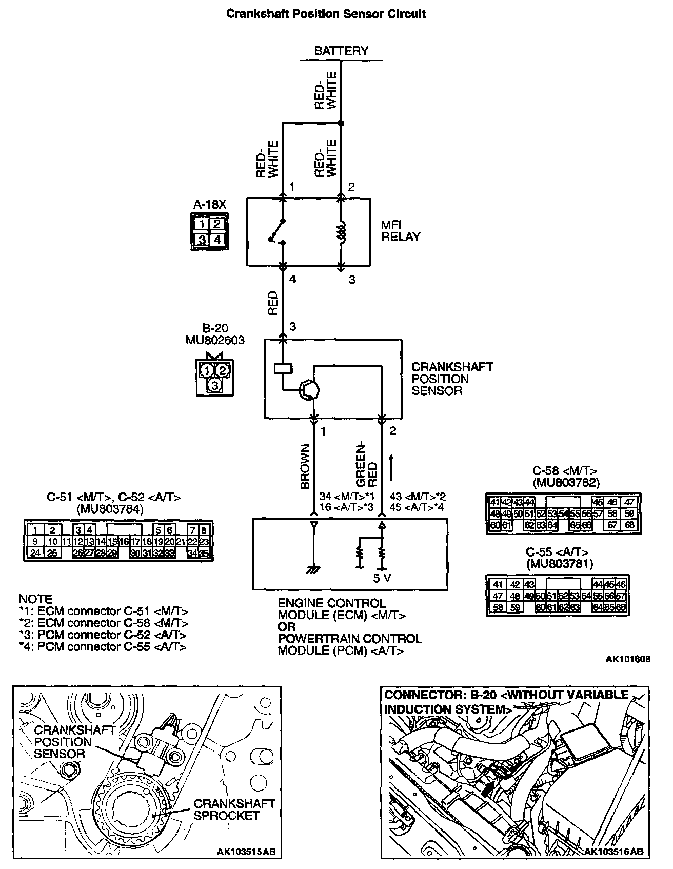 - The crankshaft position sensor power is supplied from the MFI relay (terminal 4).