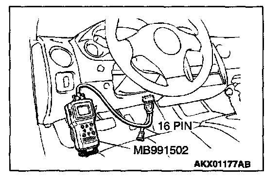 1. Connect scan tool MB991502 to the data link connector.