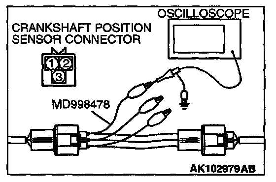 1. Disconnect the crankshaft position sensor connector, and connect the test harness special tool (MD998478) in between.