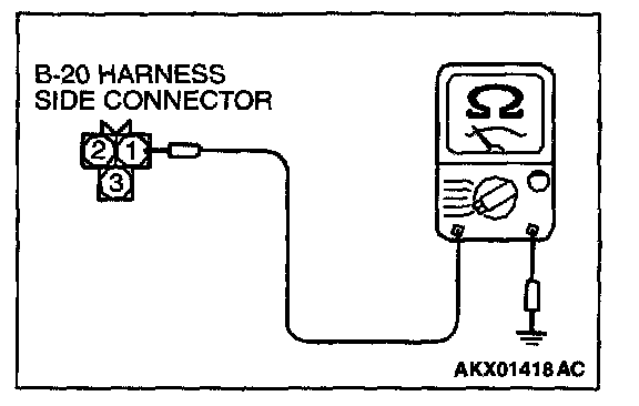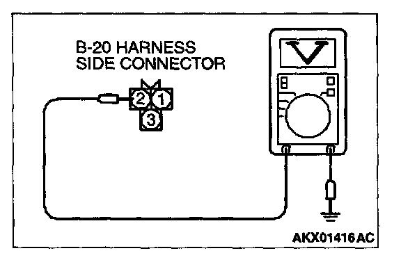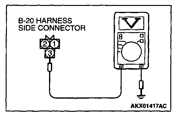 1. Disconnect the connector B-20 and measure at the harness side.
