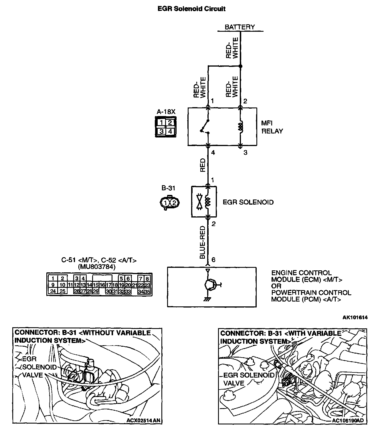 - The EGR solenoid power is supplied from the MFI relay (terminal 4).