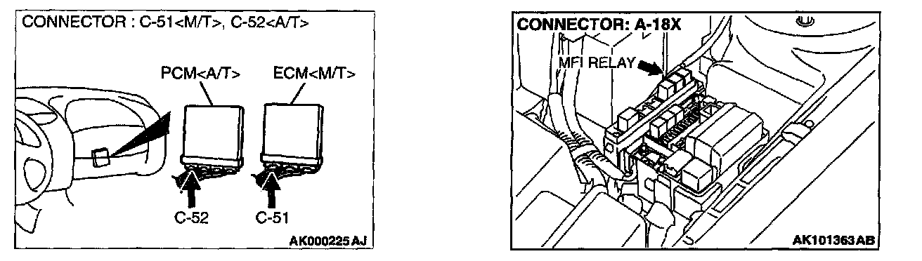STEP 5. Check connector A-18X at MFI relay for damage.