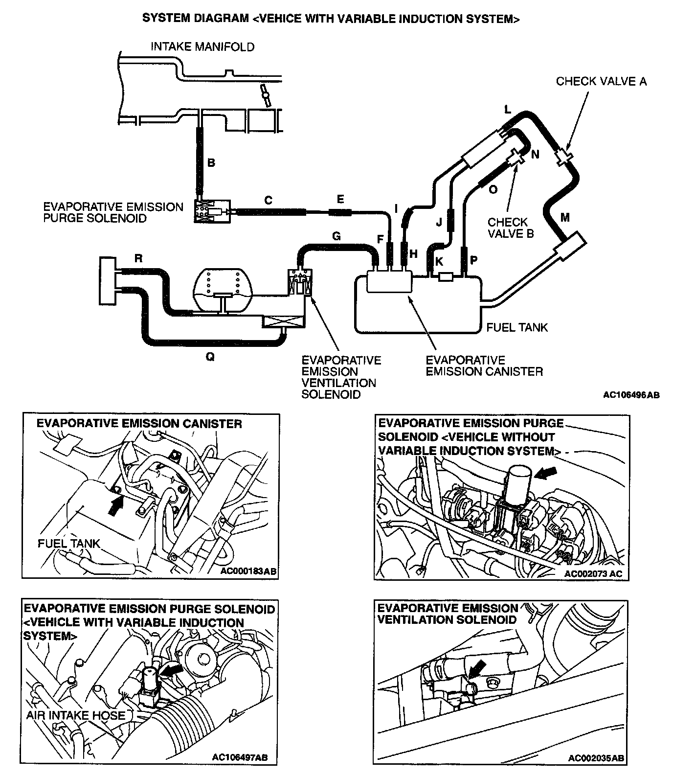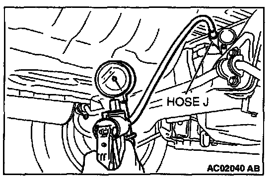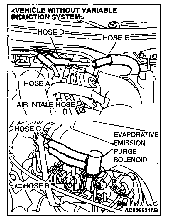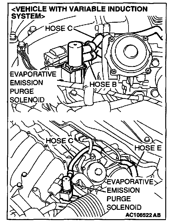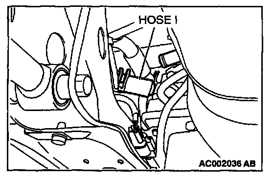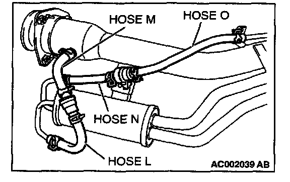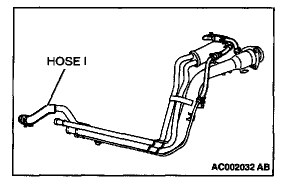 1. Disconnect hose I from the evaporative emission canister side, and plug the hose from which the pipes have been disconnected.