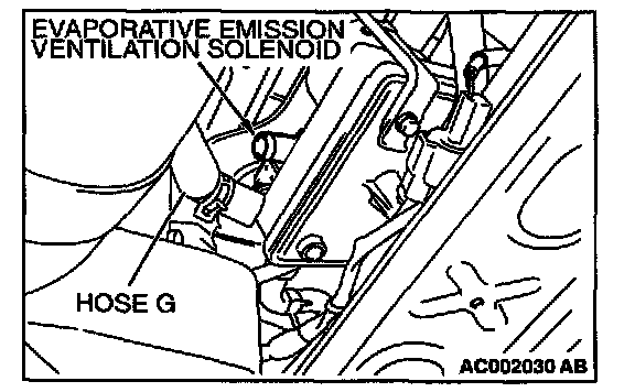 2. Disconnect the hose G from the evaporative emission ventilation solenoid side.