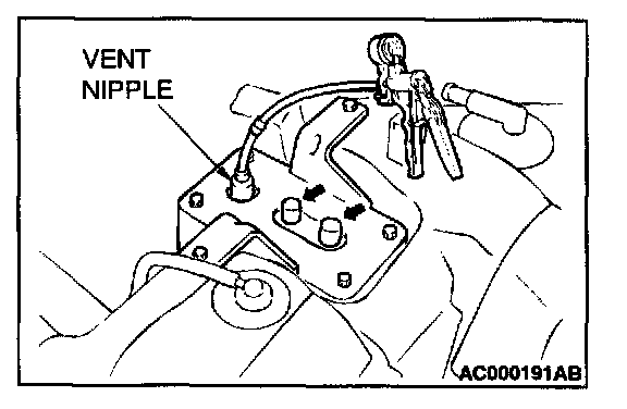 1. Connect a hand vacuum pump to the vent nipple of the evaporative emission canister.