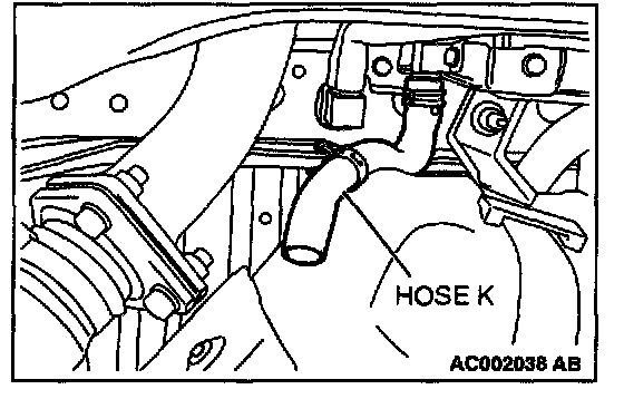 3. Disconnect hose K at the fuel tank side, and then plug the hose.
