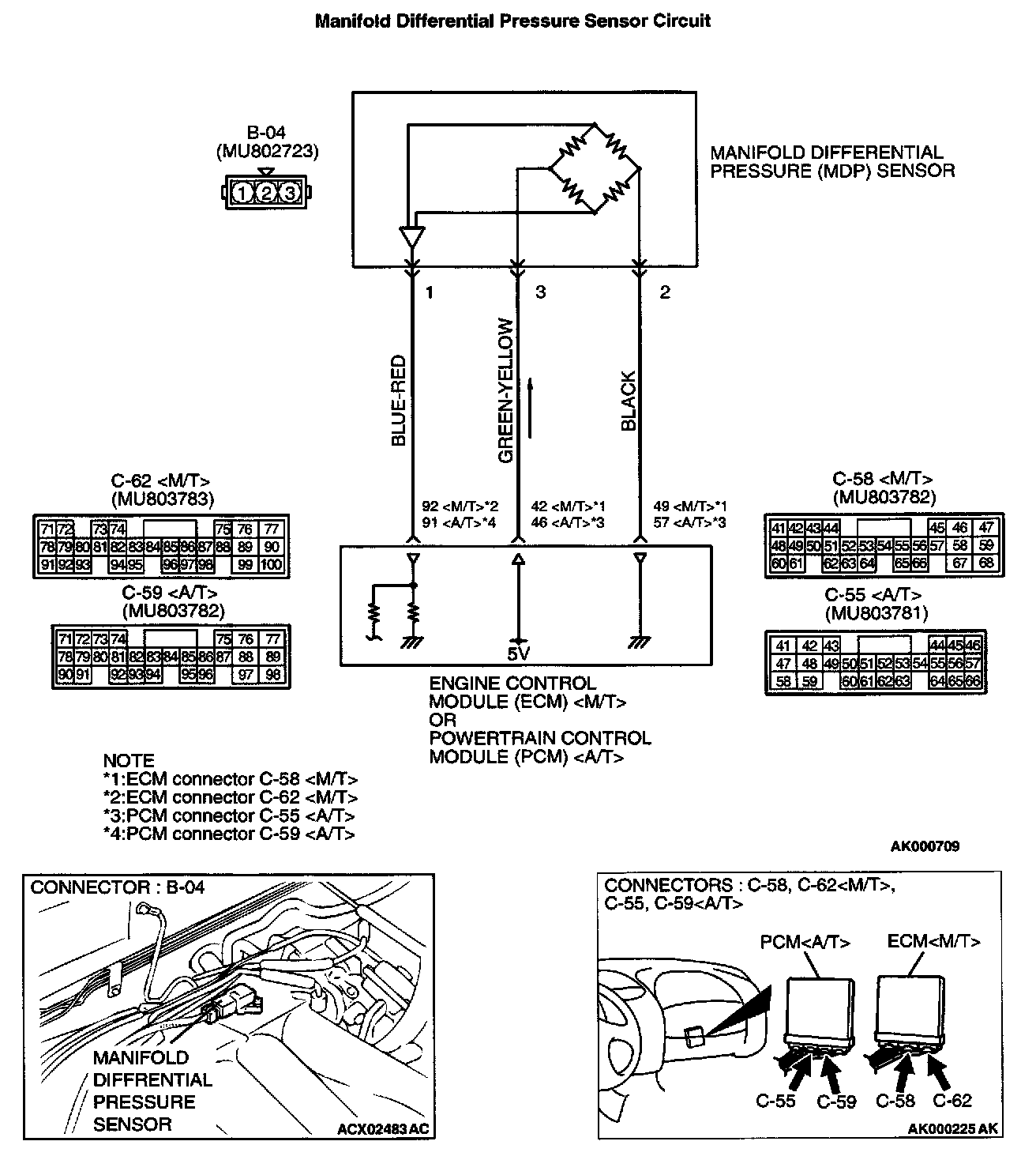 - A 5-volt voltage is applied on the manifold differential pressure sensor power terminal (terminal 3) from the ECM (terminal 42)