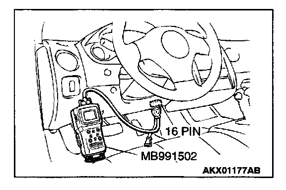 1. Connect scan tool MB991502 to the data link connector.
