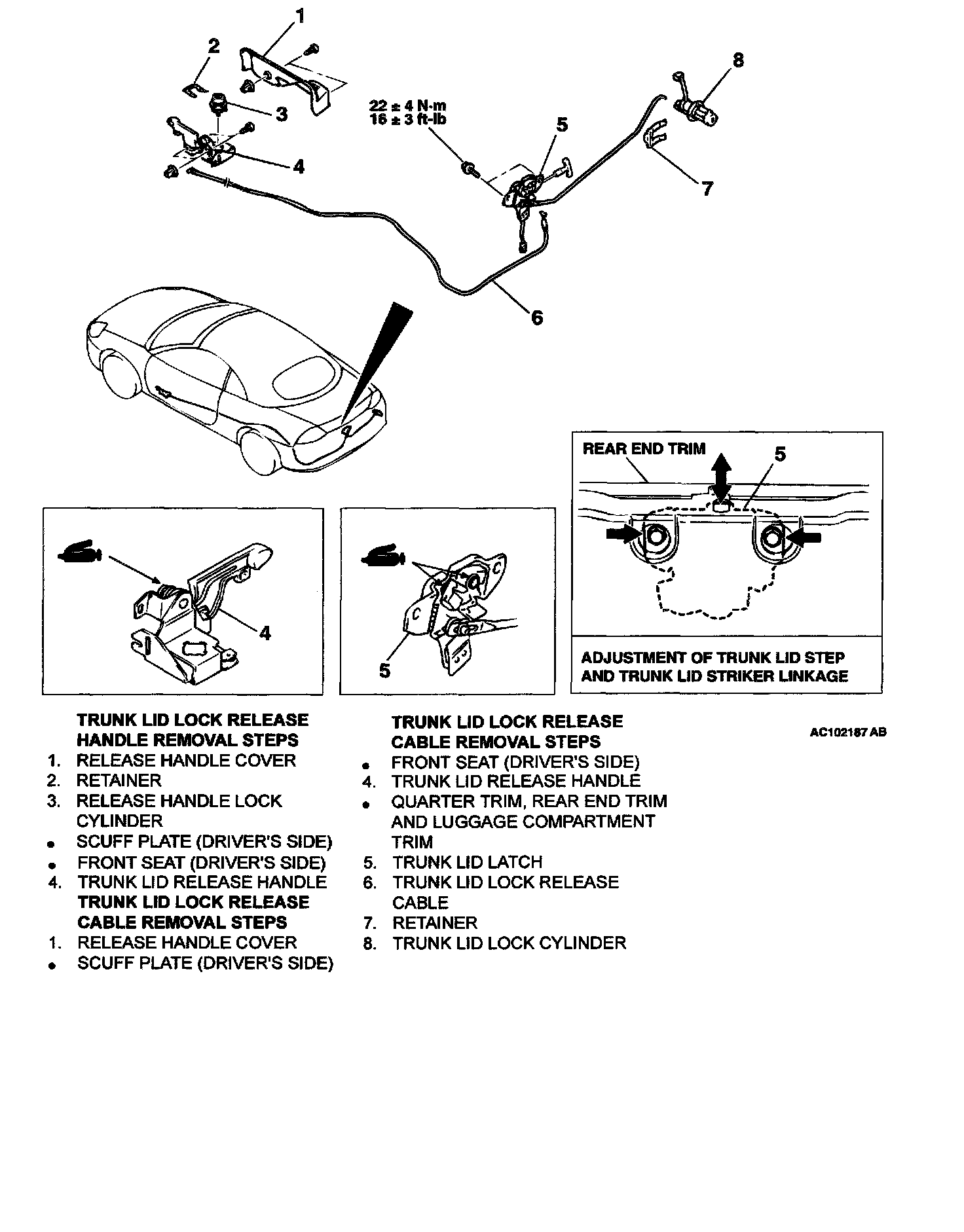 Trunk Lid Lock Release Handle and Cable: