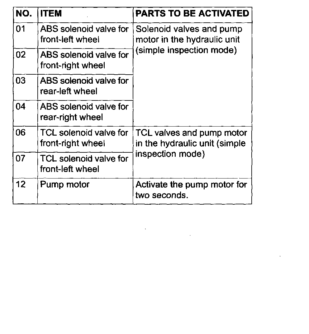 NOTE: If the ABS-ECU is inoperative, actuator testing cannot be carried out.