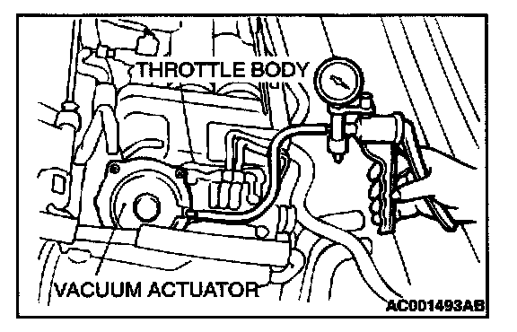 2. Check that the throttle lever operates when applying vacuum, and the vacuum is maintained.