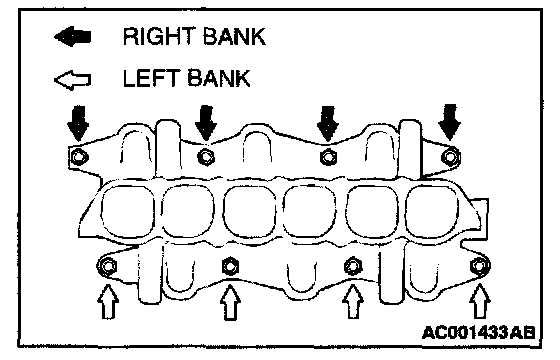 2. Tighten the intake manifold mounting nuts by the following procedure.