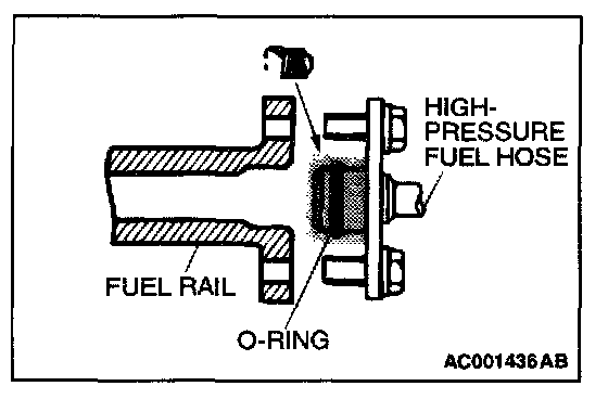 1. When connecting the high-pressure fuel hose to the fuel rail, apply a small amount of new engine oil to the O-ring and then insert the high-pressure fuel hose, being careful not to damage the O-ring.