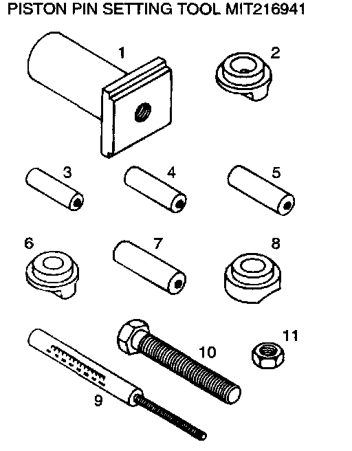 3. Insert the press pin through the piston pin hole. Select the correct connecting rod guide pin. (See above.) Thread the guide pin onto the threaded portion of the press pin.