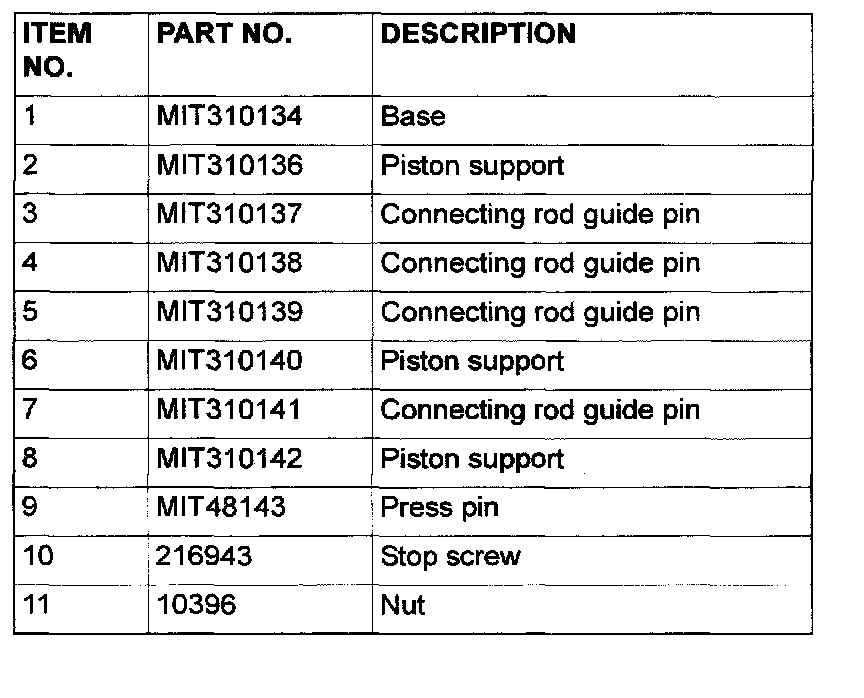 7. Remove the piston assembly from the base. Remove the guide pin and press pin from the assembly.