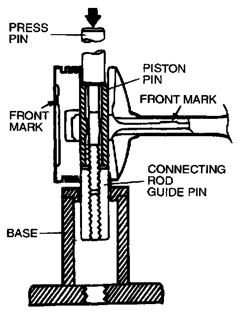 6. Press the piston pin through the connecting rod until the guide pin contacts the stop screw.