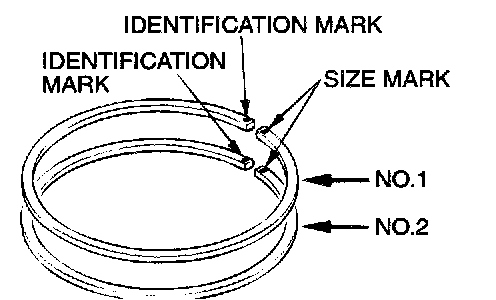 1. To prevent wrong installation, check the identification mark of each piston ring. The identification mark is stamped near the ring gap: