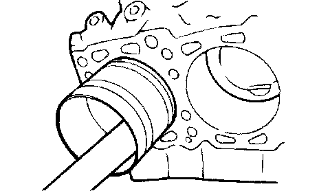 3. Insert the piston ring into the cylinder bore. Force the ring down with a piston, the piston crown being in contact with the ring, to correctly position it at right angles to the cylinder wall. Then, measure the end gap with a feeler gauge.