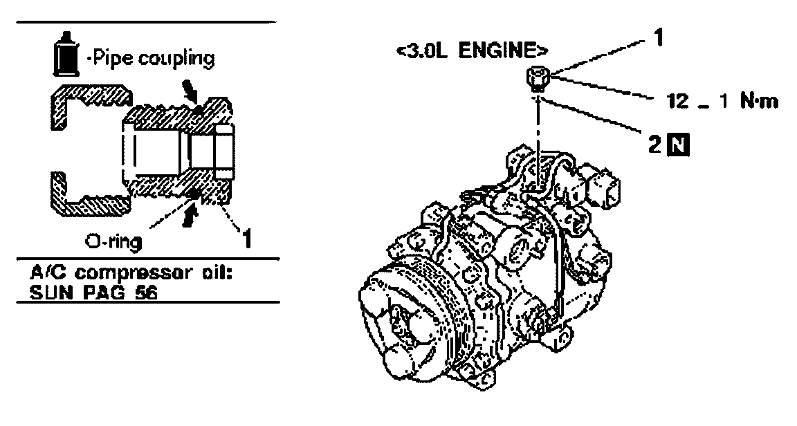 2. The compressor oil has to be contained as follows before installing the compressor in this vehicle.