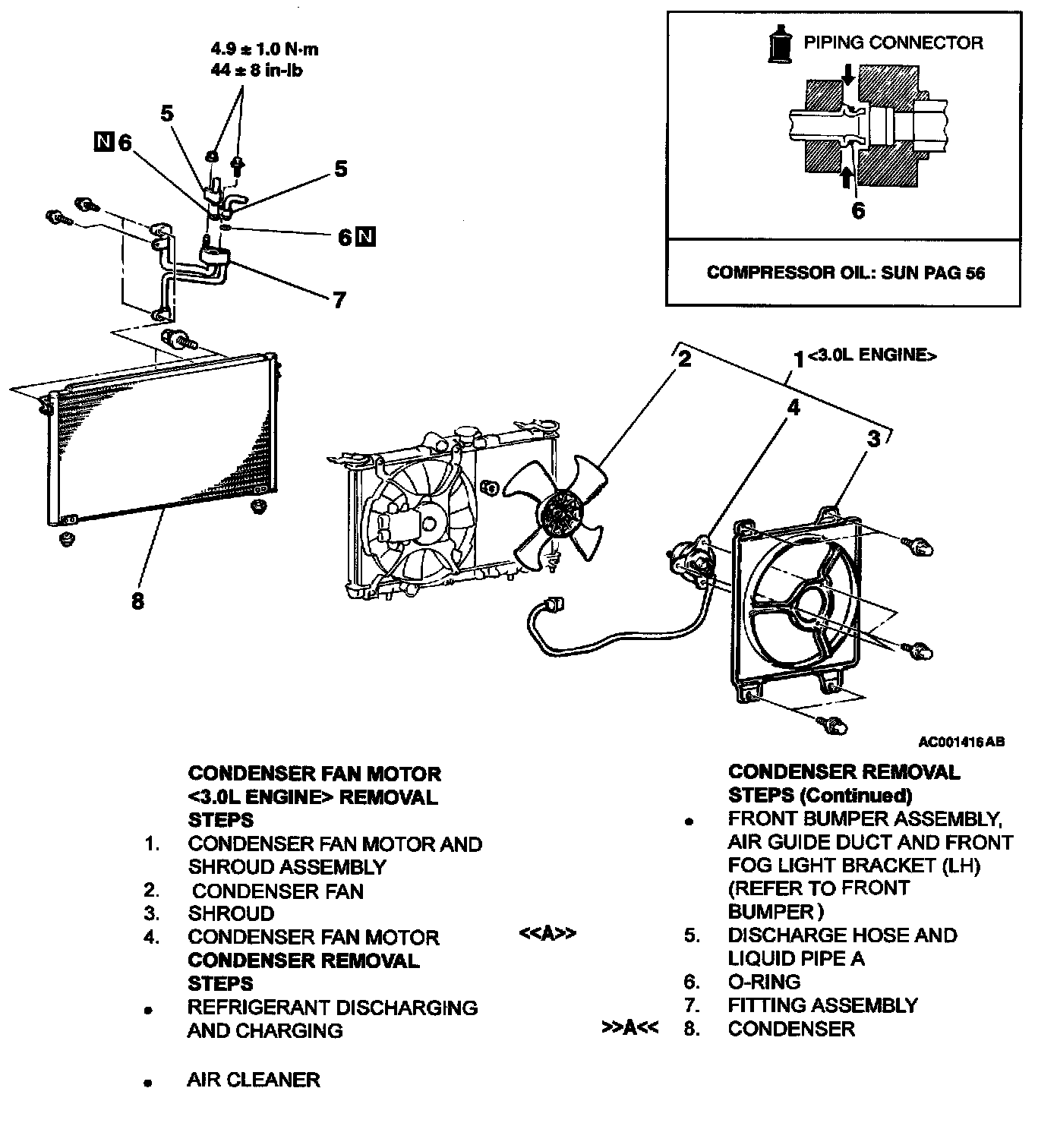When replacing the condenser, refill it with a specified amount of compressor oil and install it. (to the vehicle).