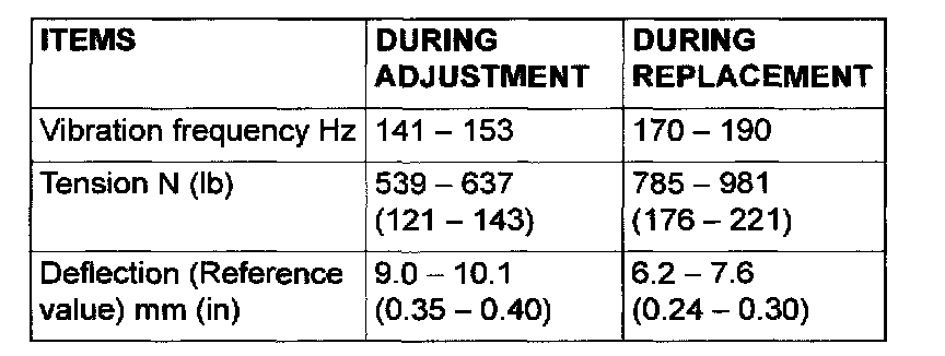 If the tension or deflection is outside the standard value, adjust by the following procedure.