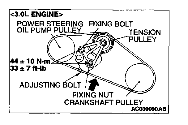 POWER STEERING OIL PUMP DRIVE BELT TENSION CHECK AND ADJUSTMENT