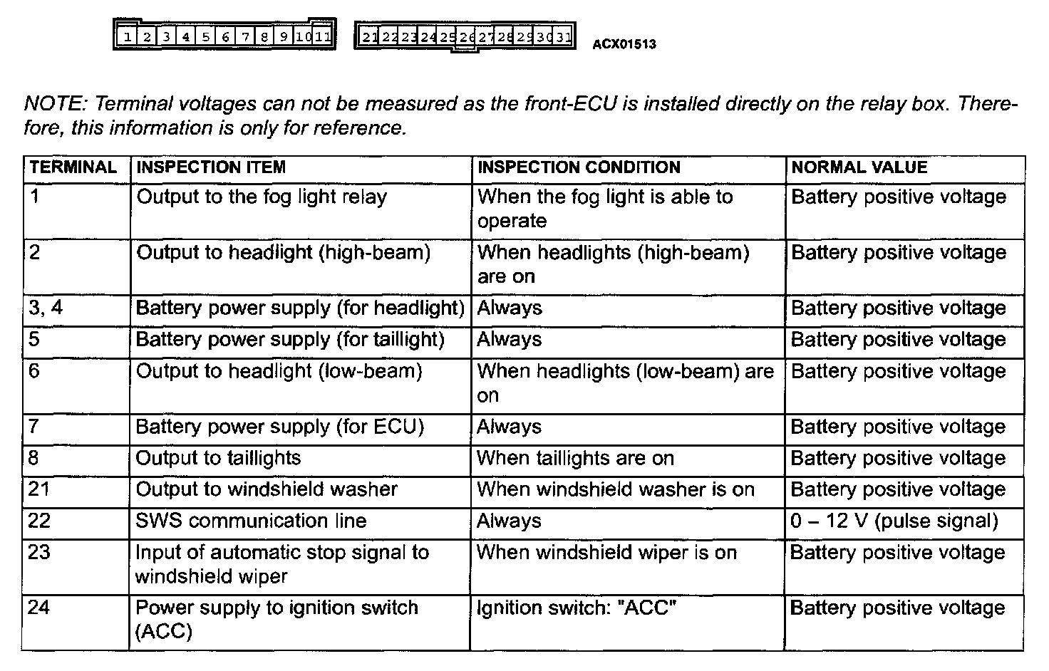 CHECK AT ECU TERMINALETACS-ECU Terminal Arrangement Part 1: