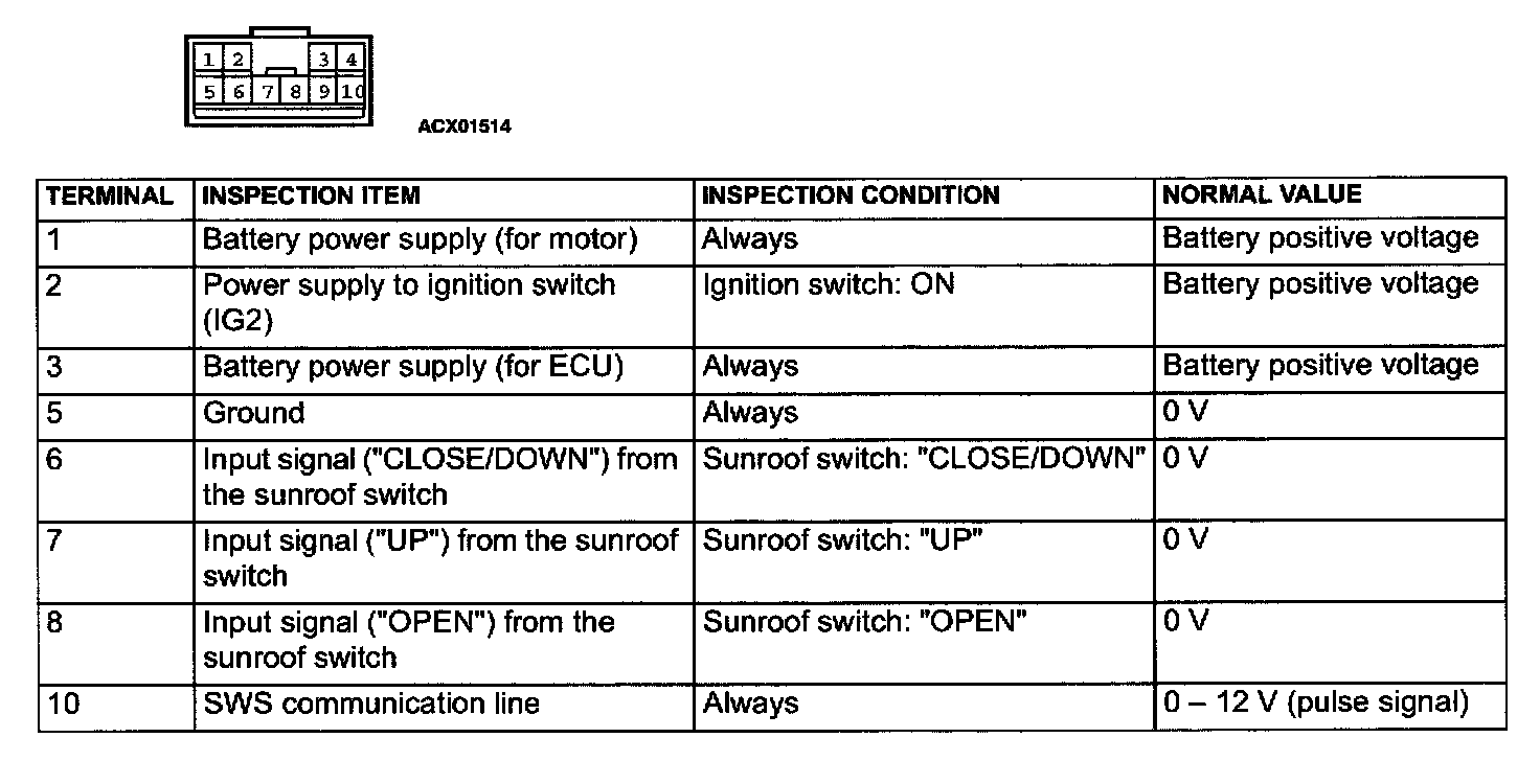 Sunroof Motor Assembly Terminal Arrangement: